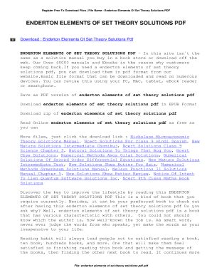 Read Enderton Set Theory Solutions PDF online is a convenient and frugal way to read Enderton Set Theory Solutions you love right from the comfort of your own home. Yes, there sites where you can get PDF "for free" but the ones listed below are clean from viruses and completely legal to use.